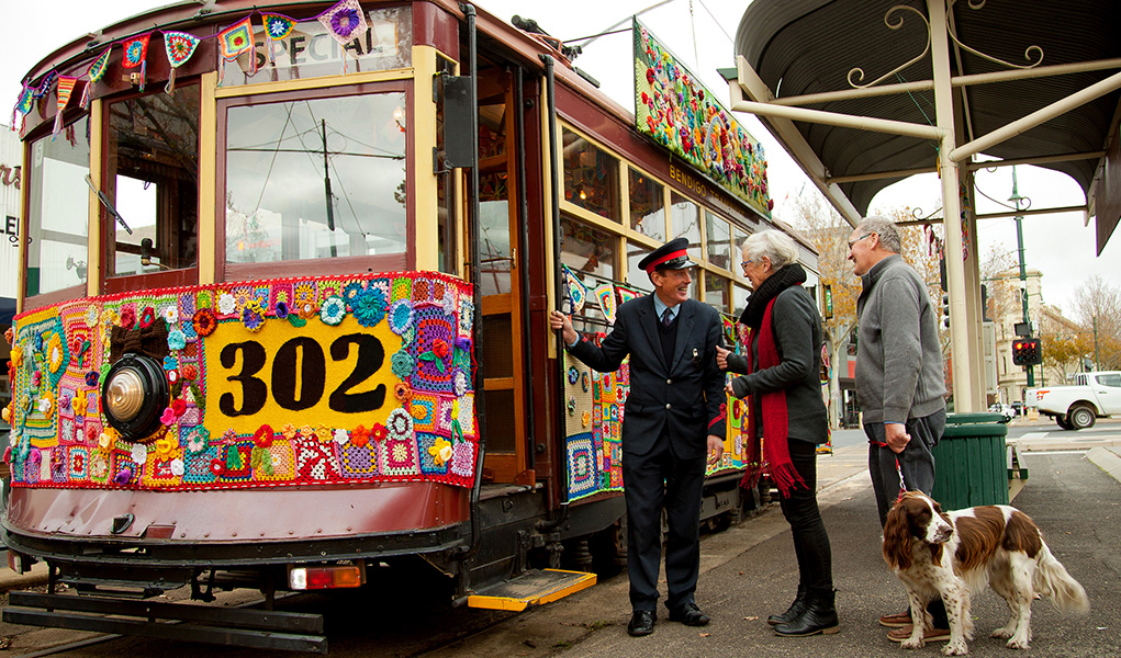 Hop on/off to explore Bendigo, including stops like the Tram Café