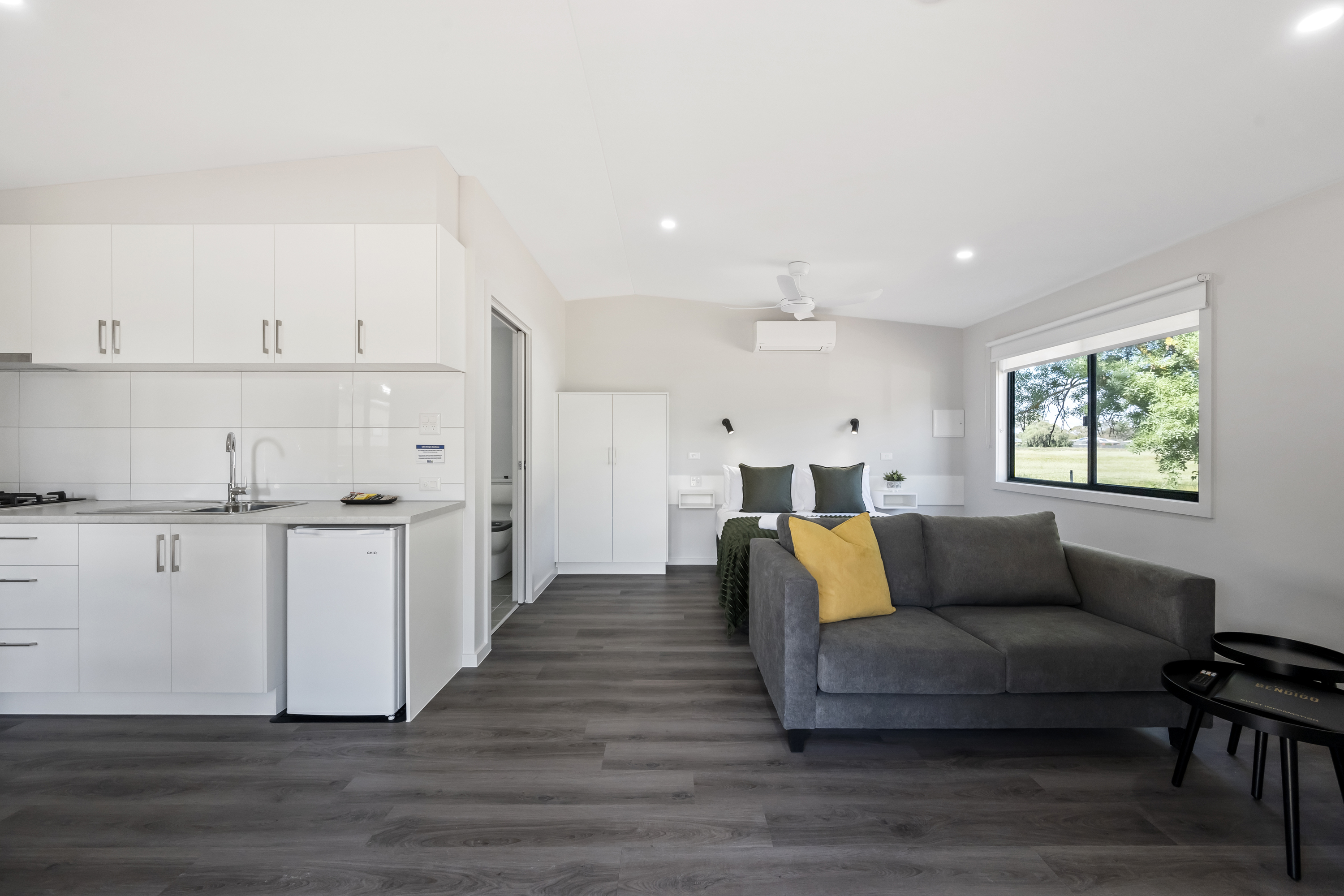 The connecting studio is a standard design and is ideal for carers, family members, or friends who wish to stay close by.